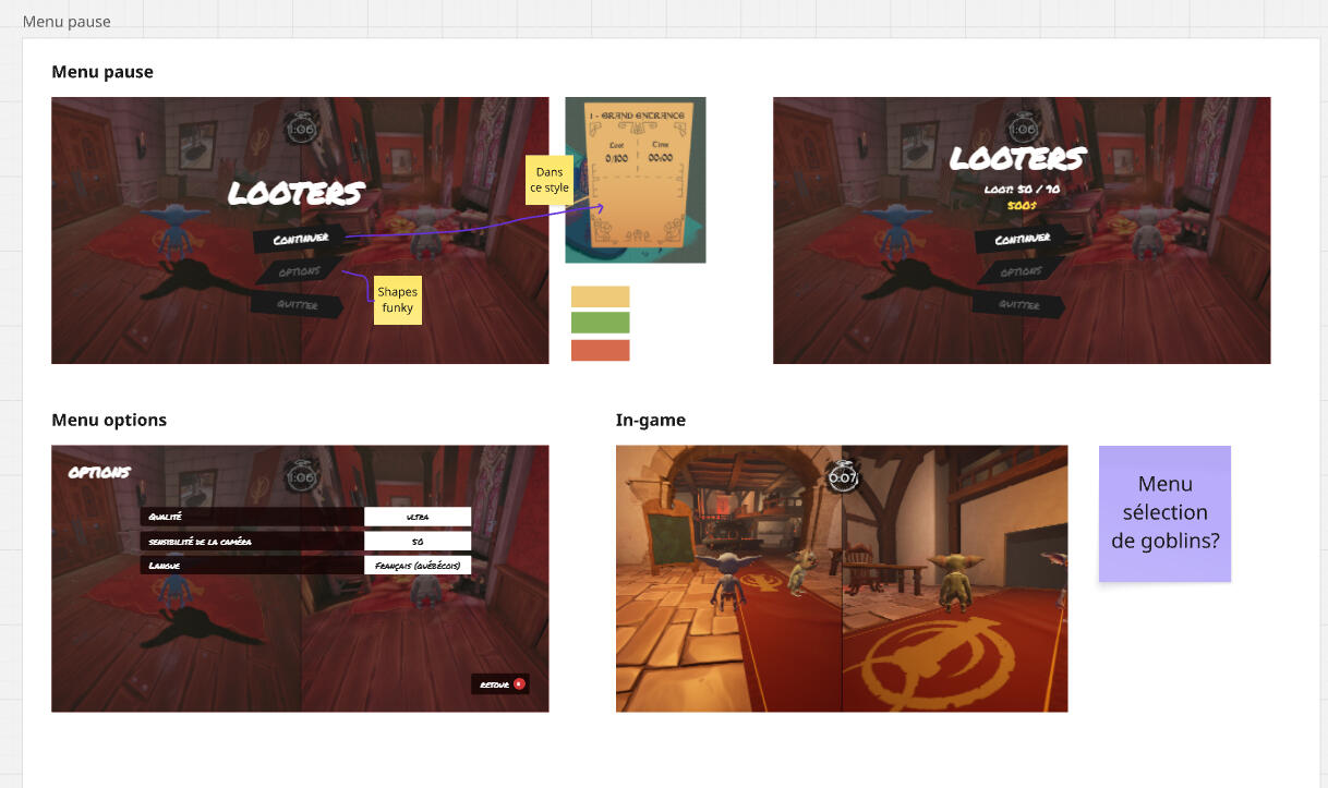 Pour le projet, j'ai également travaillé avec notre programmeur UI et notre artiste UI afin de concevoir les différentes interfaces du jeu. Voici quelques esquisses des différents menus.
