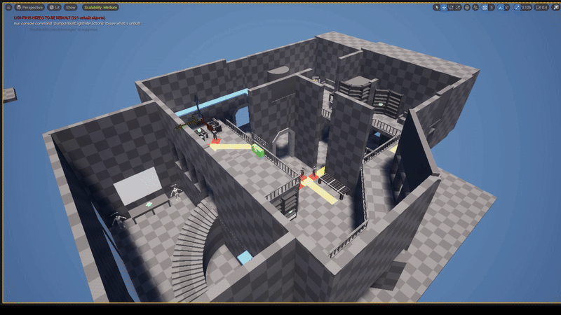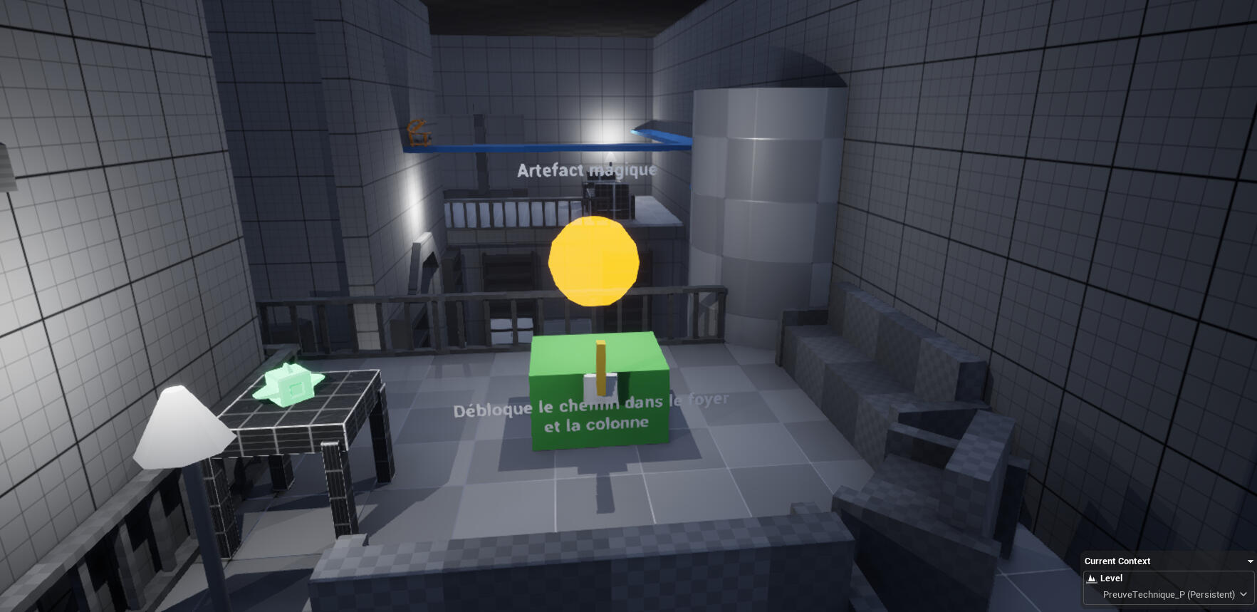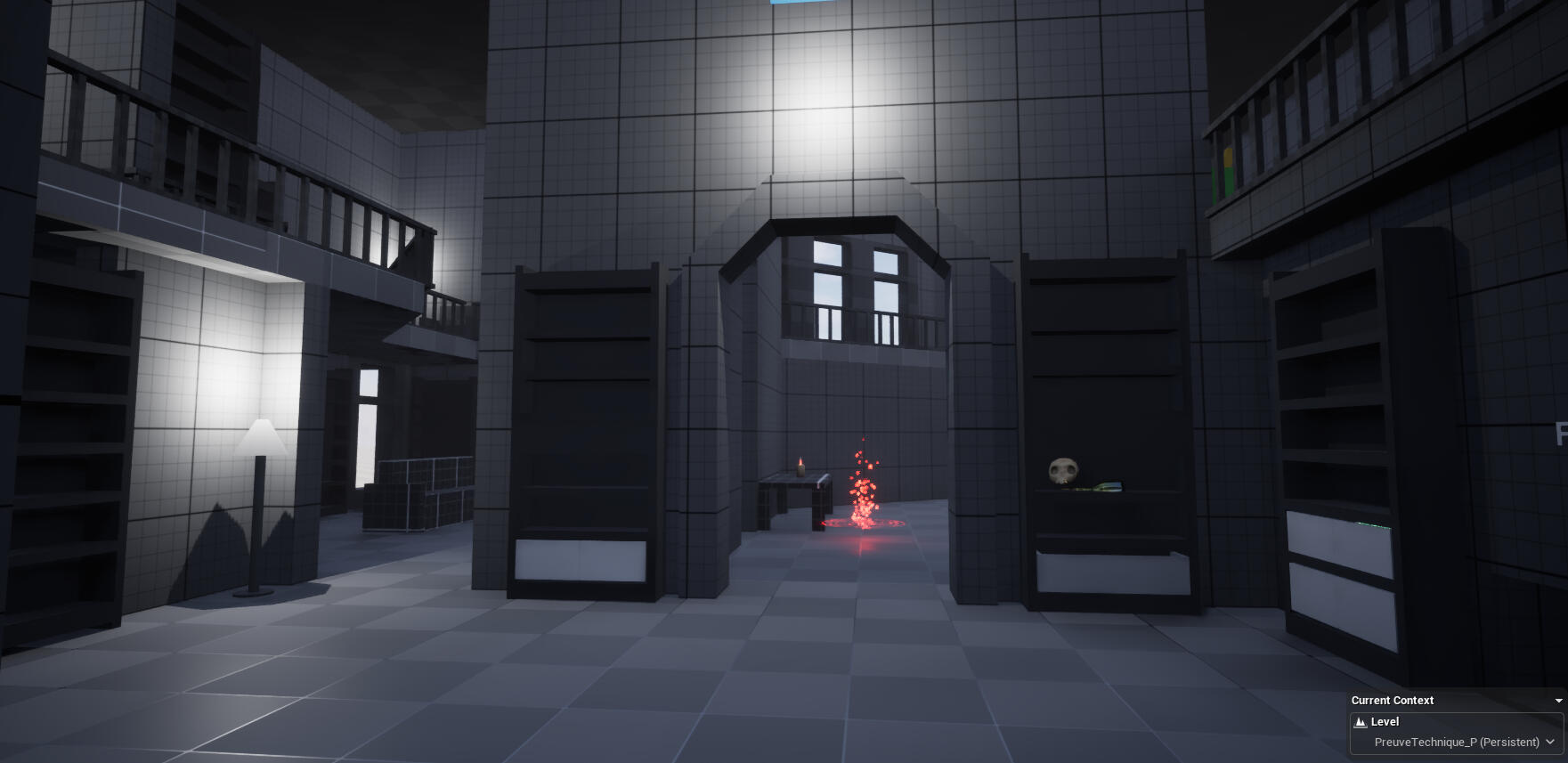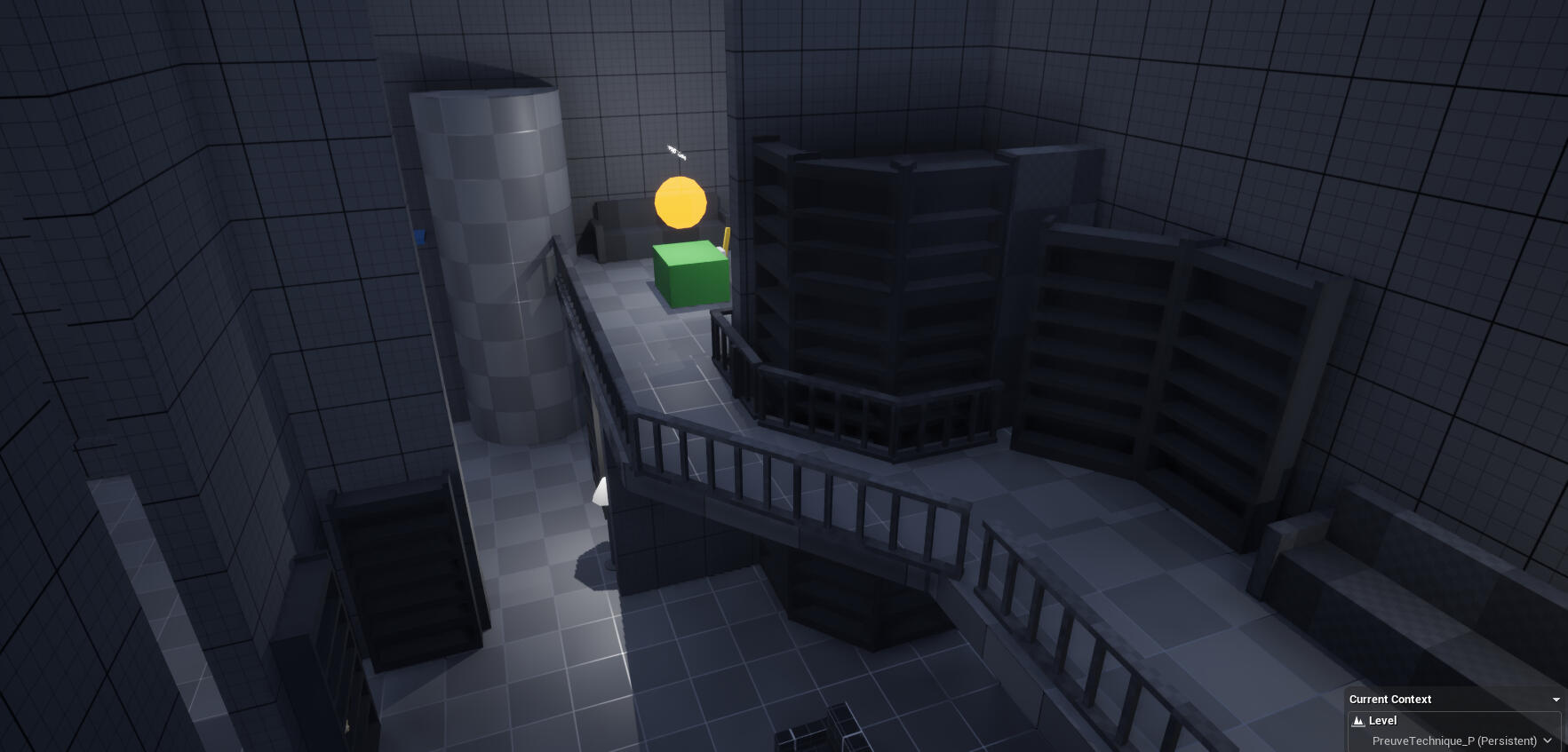 Ma conception de niveaux a commencé pendant le développement de la preuve technique du projet.Afin de démontrer que le concept du jeu méritait d'être développé davantage, l'équipe devait créer et présenter une preuve technique, soit le pitch du jeu, au studio Gameloft Montréal, afin d'obtenir leur avis ainsi que du feedback constructif sur le projet.Nous devions donc créer un niveau qui refléterait l'expérience réelle du jeu. La section du niveau que j'ai construite pour la preuve technique correspond à la version initiale du niveau de la bibliothèque que l'on retrouve dans la version actuelle du jeu.